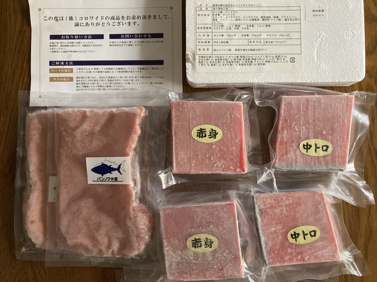 「バンノウ水産 厳選〔本鮪〕の詰め合わせとネギトロのセット 13000 point」をコロワイドの株主優待ポイントでもらいました。