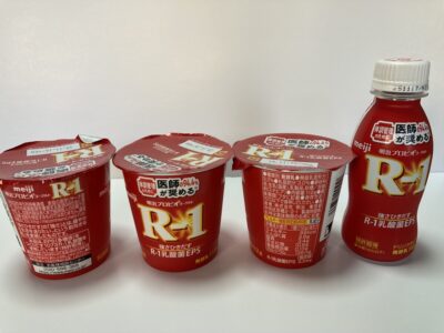 ↑ギフトカードで引き換えた「明治プロビオヨーグルトR-1」と「明治プロビオヨーグルトR-1ドリンクタイプ」