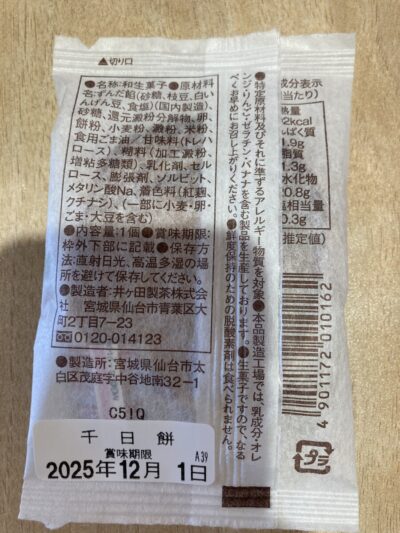 季節のお菓子はずんだ味の千日餅でした。もちもちした食感です。